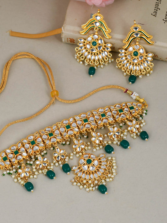 Navratan Gold Plated Jadau Pearl Jewellery Set For Women