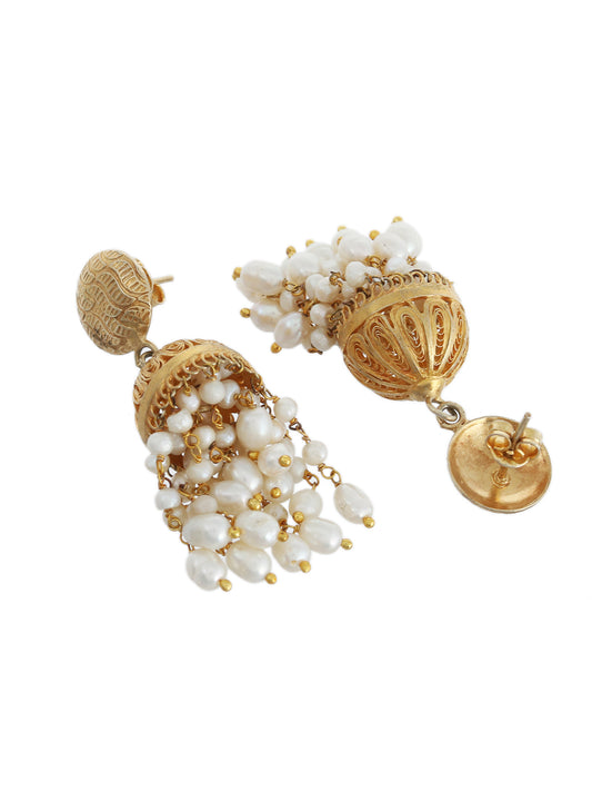 Sterling Silver Gold Plated Pearl Drop Jhumka Earrings