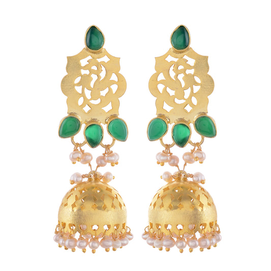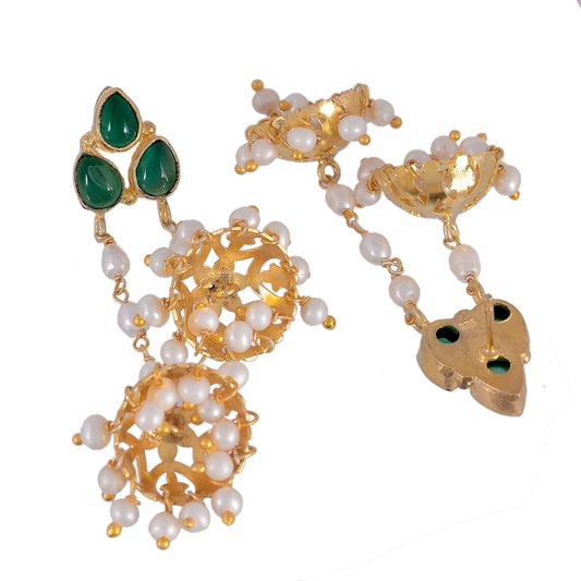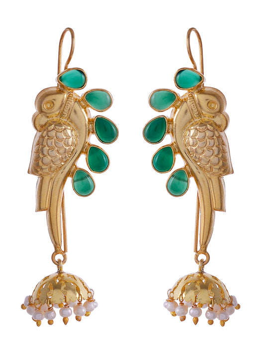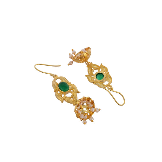 Gold Plated Green Handcrafted Sterling Silver Jhumka Earrings