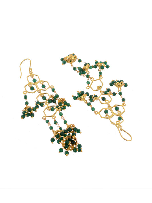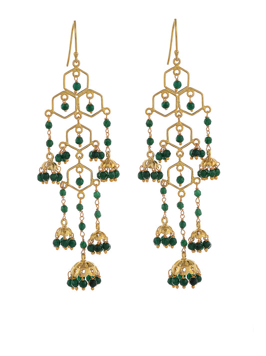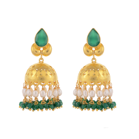 Green Onyx Gold Plated Sterling Silver Double Jhumki Earring