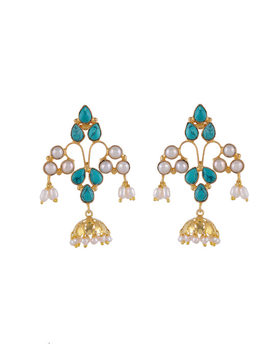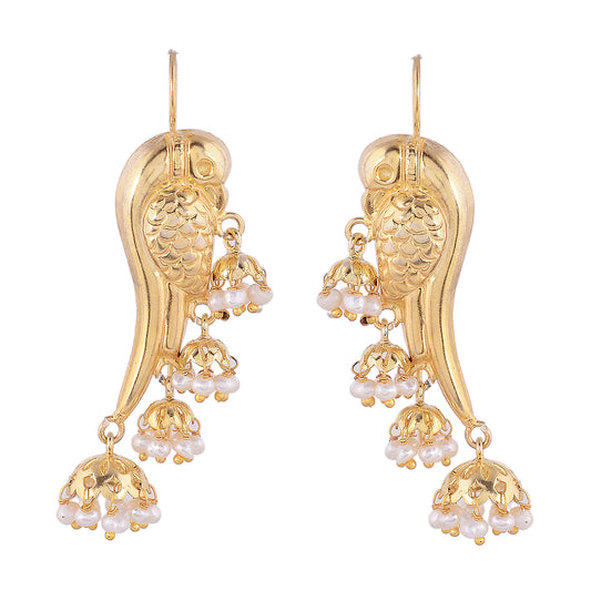Sterling Silver Gold Plated Pearl Drop Jhumka For Women