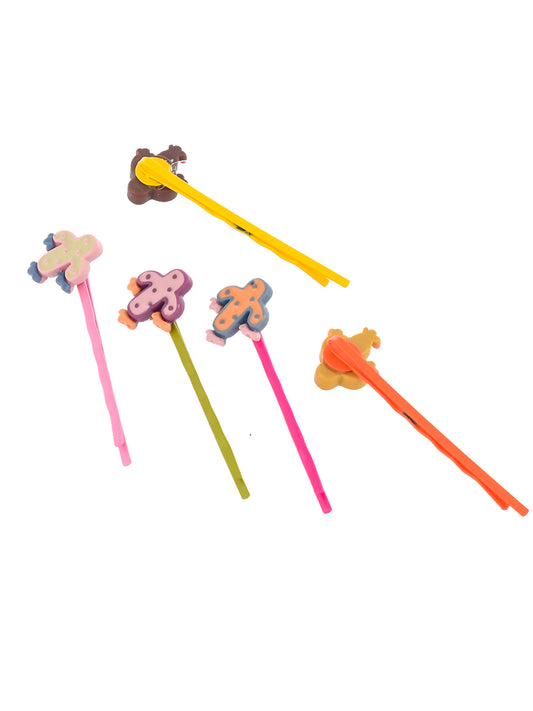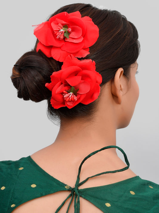 Set of 10 Red Floral U Pin Hair Accessory Set