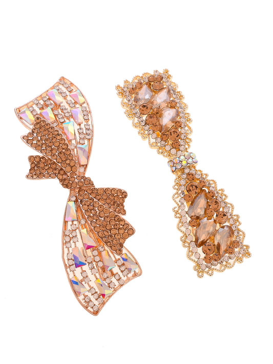 Set of 2 Gold Toned Embellished French Barette