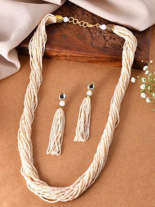 Traditional Beaded Long Jewellery Set With Earrings For Women