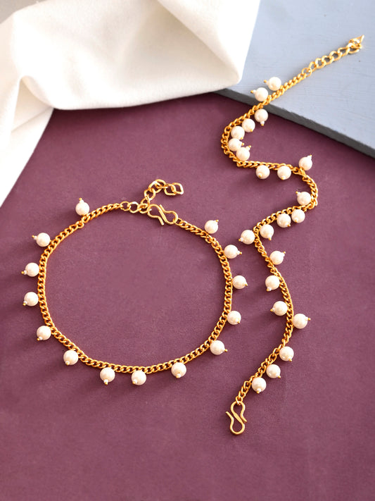 White Pearl & Gold-Plated Anklet For Women