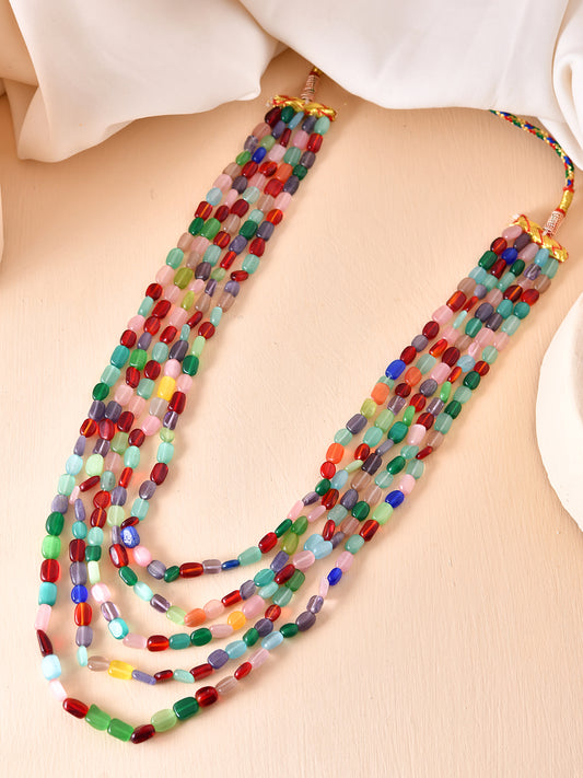 Gold Plated Multicolor Beads Traditional Layered Necklace For Women