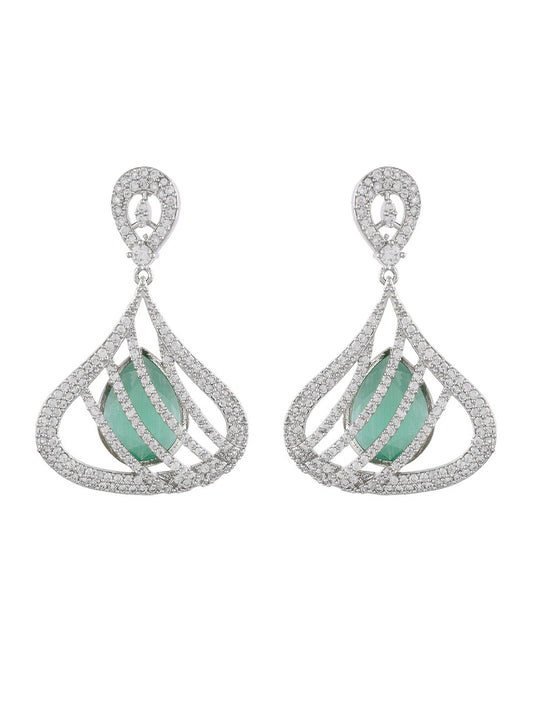 Mint Green American Diamond Drop Earrings For Women & Girls
