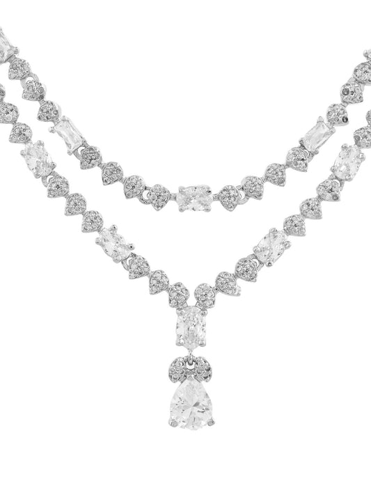 Bold and eye-catching, American diamond statement jewellery, such as AD necklaces and earrings, is perfect for special occasions and events. American Diamond Necklaces for bride instantly elevate the overall look and make a striking impression.