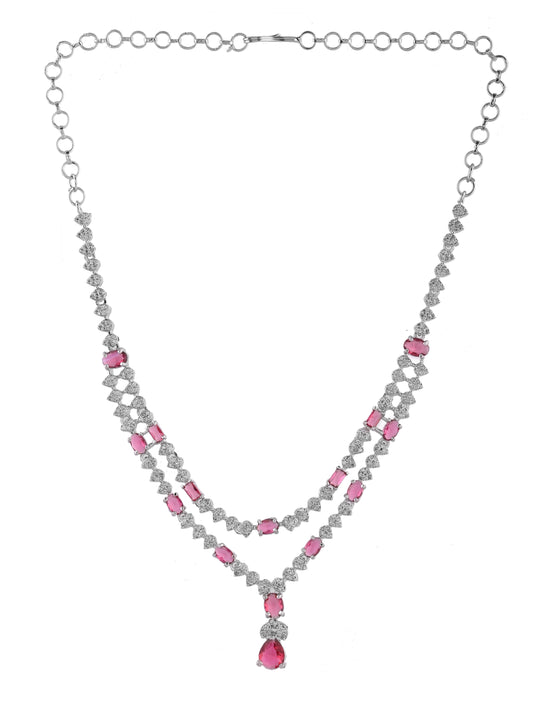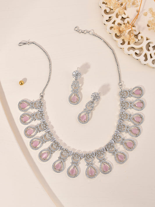American Diamond Jewellery Set For Women | Wedding & Ethnic AD Set with pink stone