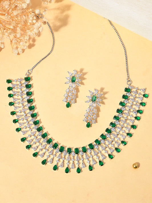 Green American Diamond Silver-Plated Jewellery Set For Women
