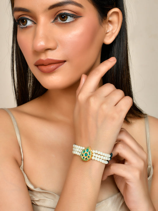 Gold Plated Kundan Heavy Gokhru Beaded Bracelet