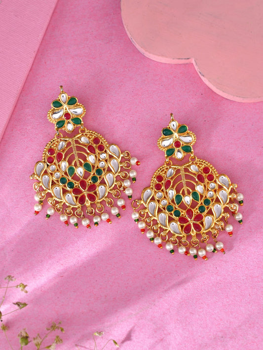 Gold Plated Pearl Jadau Chandbali Earrings For Women