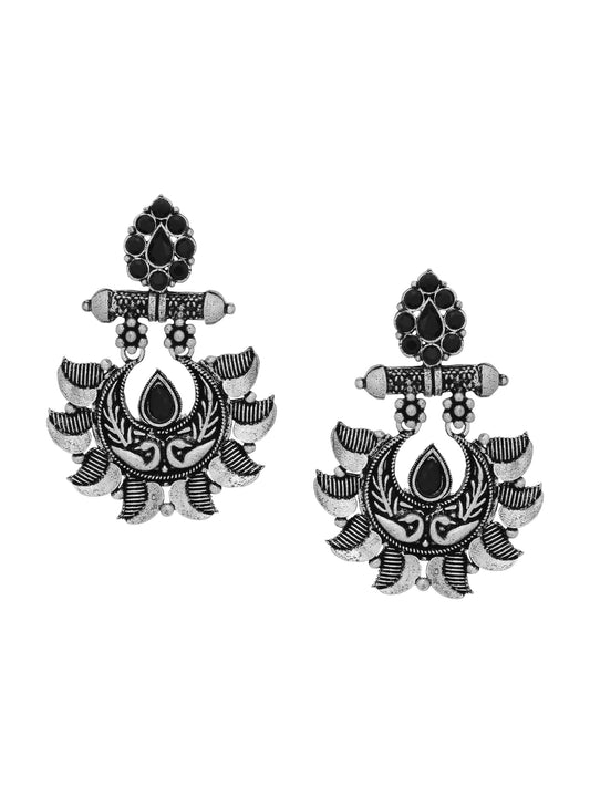 Antique Jewelry Oxidised Drop pearl long Earrings For Women