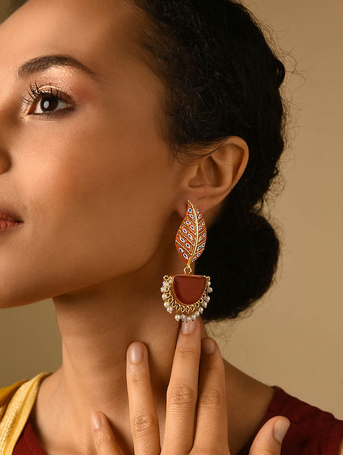 Traditional Ethnic Golden Orange Pearl Chandbali Earrings