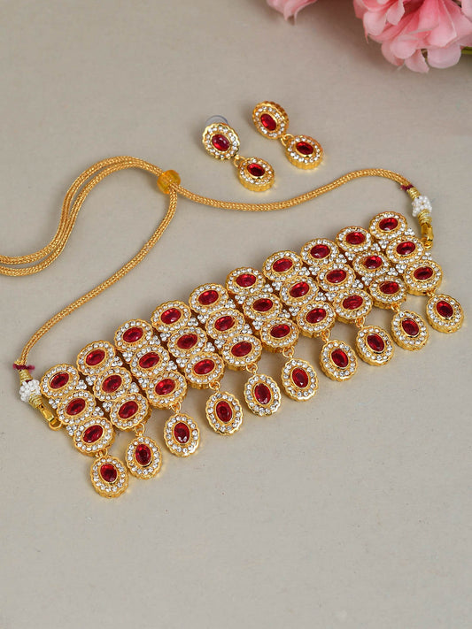 Gold Plated Ad Faux Ruby Jewellery Set For Women