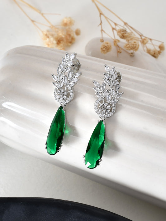 Silver Plated American Diamond Drop Earrings For Women/Girls