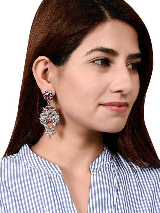 Oxidized Silver Plated Pink Drop Earrings For Women