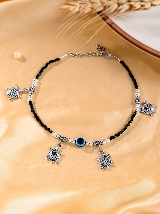 Silver Plated Oxidized Evil Eye Anklet For Women
