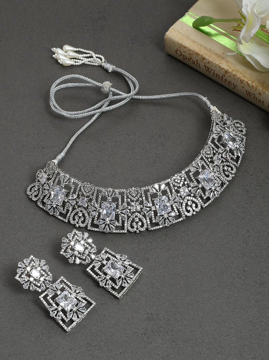 Silver Plated Pastel Color American Diamond Jewellery Set