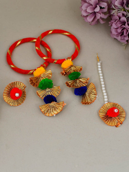 Red & Gold Toned Gota Patti Flower Haldi Jewellery Set