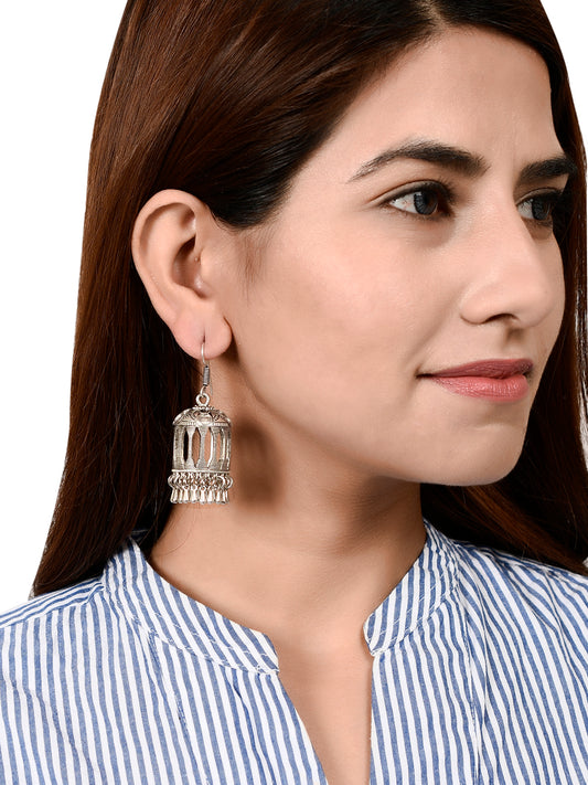 Indian Oxidized Silver Jhumka Earrings For Women & Girls