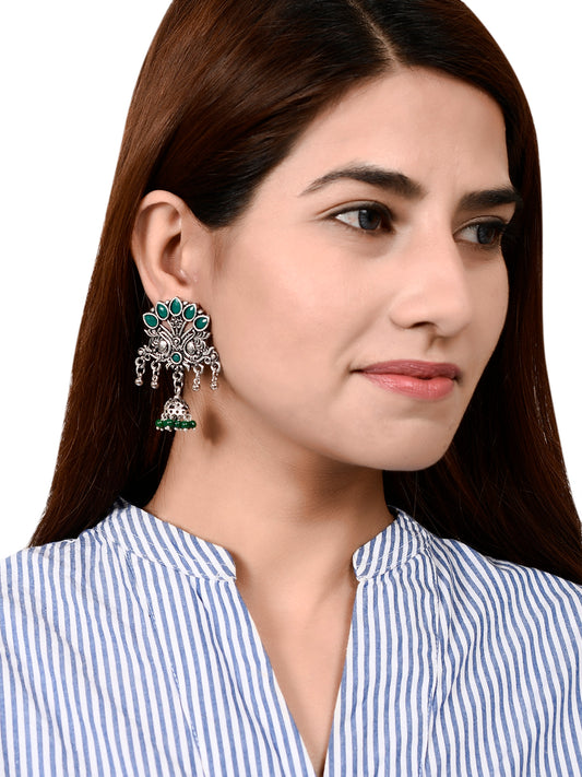 Traditional Green Oxidized Silver Look Alike Jhumka Earrings For Women