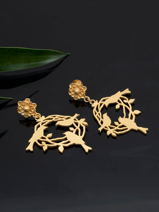 Floral Gold Plated Stud Circle Of Life Earrings For Girls
