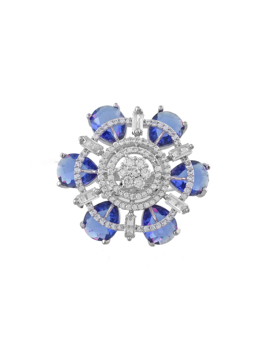 Blue Sapphire and Diamond Halo Ring | AD Ring For Women