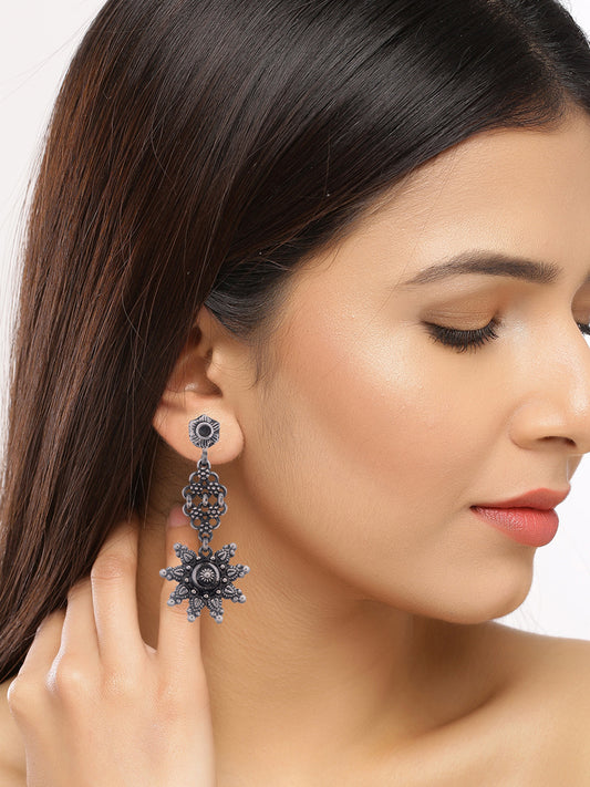 Black Oxidised Sterling Silver Chandbali Earrings For Women