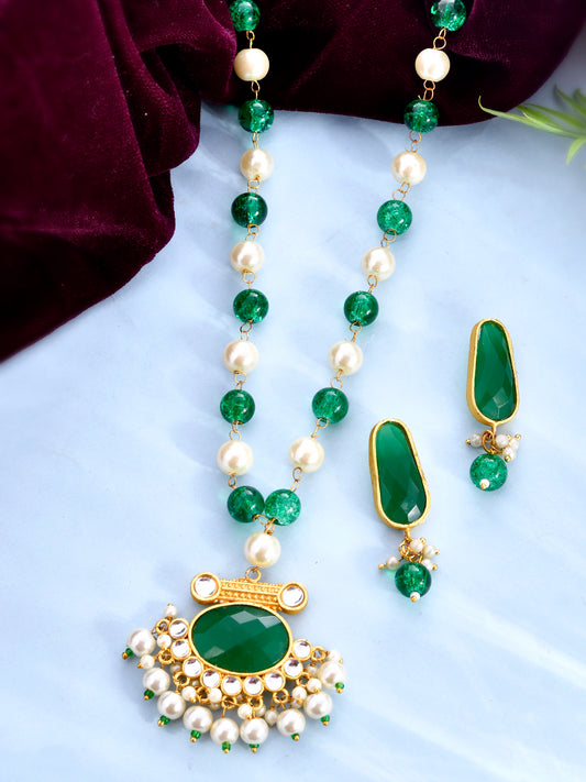 Green and Pearl Beaded Necklace Set With Matching Earrings