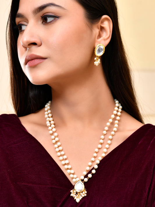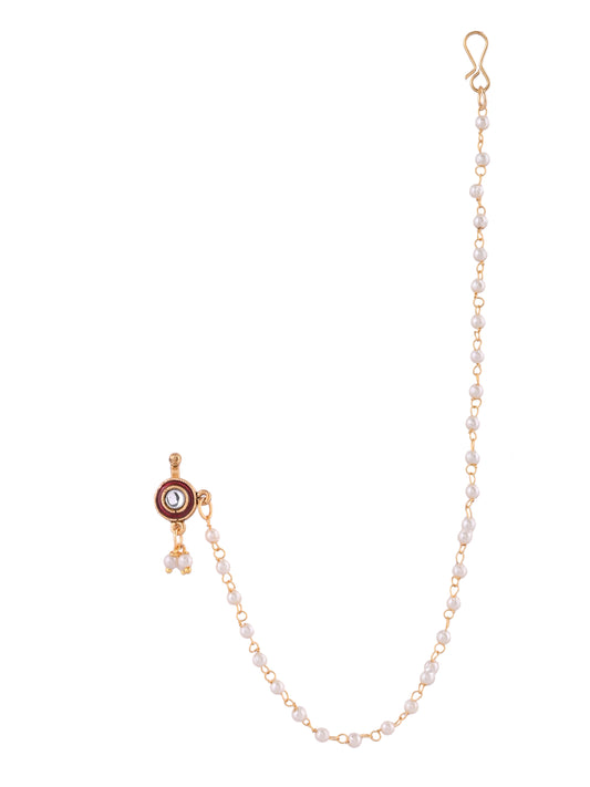 Gold-Plated Kundan and Pearl Chain Nosepin For Women