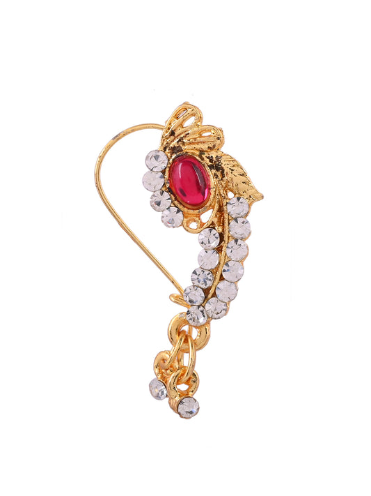 Gold-Plated Nosepin With Red Stone and Crystal For Women