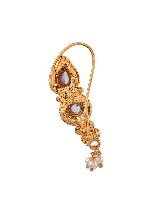 Gold-Plated Nosepin With Pearl and Red Stone Nosepin For Women