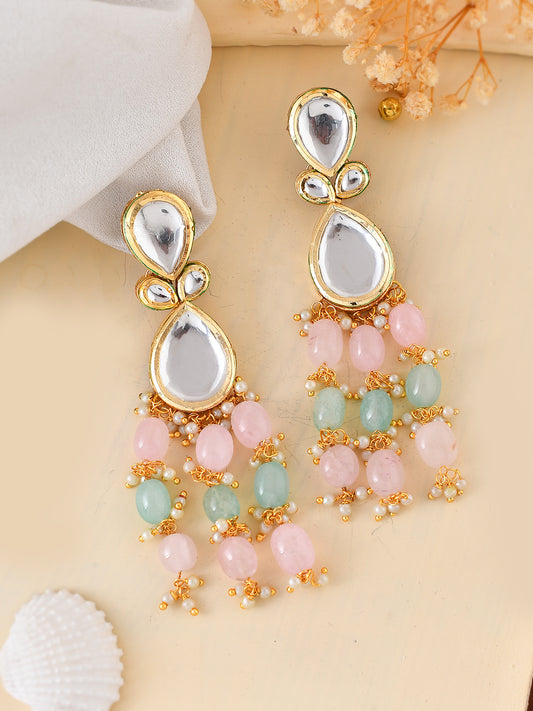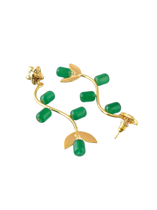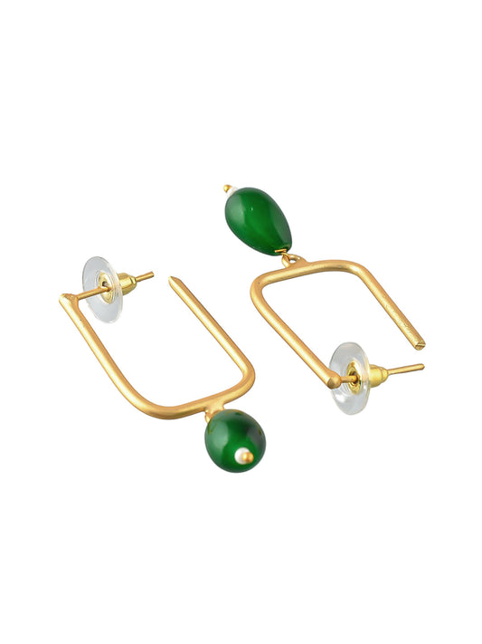 New Gold Plated Square Earring For Women With Green Beads For Women