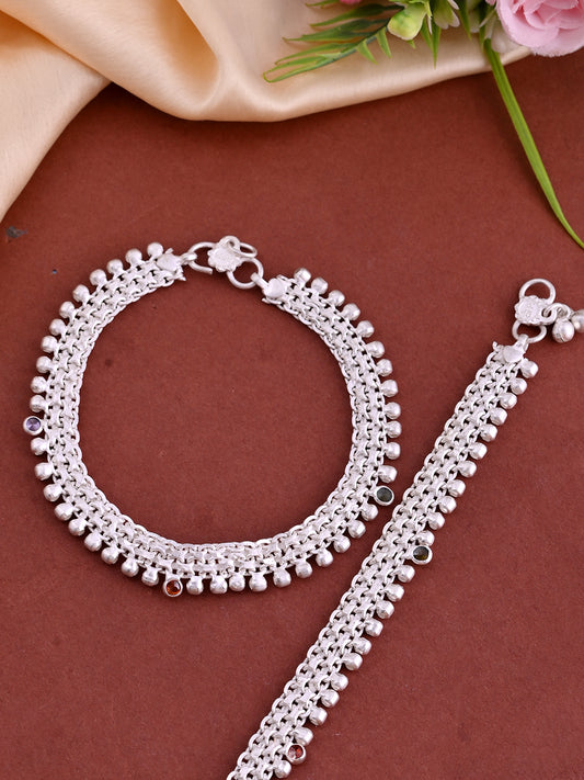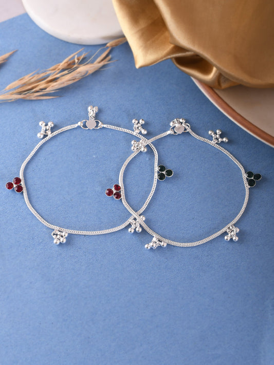 Silver Anklets With Colored Stones For Women | Ethnic Payal