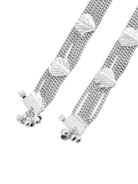 Silver Anklet With Leaf Design | Traditional Payal For Women