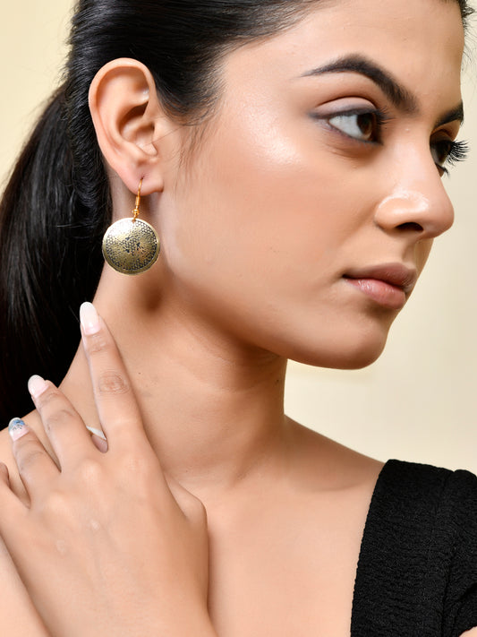 Gold & Black Floral Round Earrings For Women
