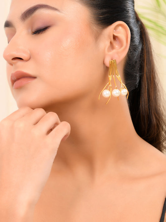 Pearl Studded Gold-Plated Drop Earring For Women