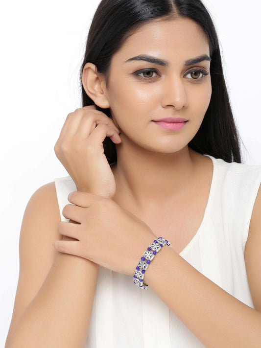 Oxidised Floral Blue Beads Adjustable Bracelet For Women