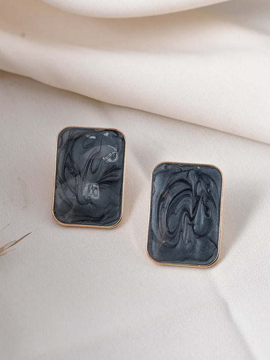 Black Marble Rectangle Earrings | Gold-Plated Earrings