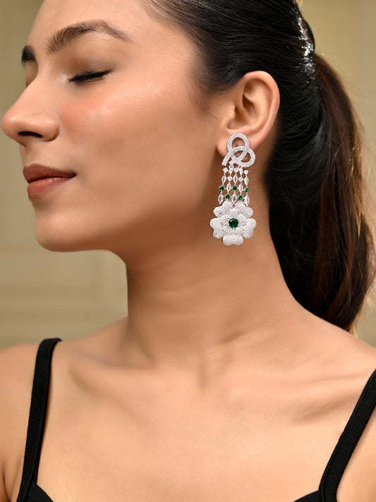 Green American Diamond Silver Plated Earrings | Ethnic Earrings