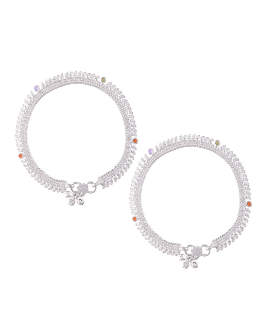 Silver Anklet With Multicolor Gemstones For Women | Daily Wear Payal