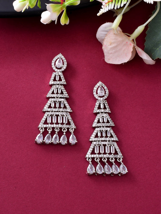 Silver-Toned American Diamond Chandelier Earrings | Party & Bridal jewellery