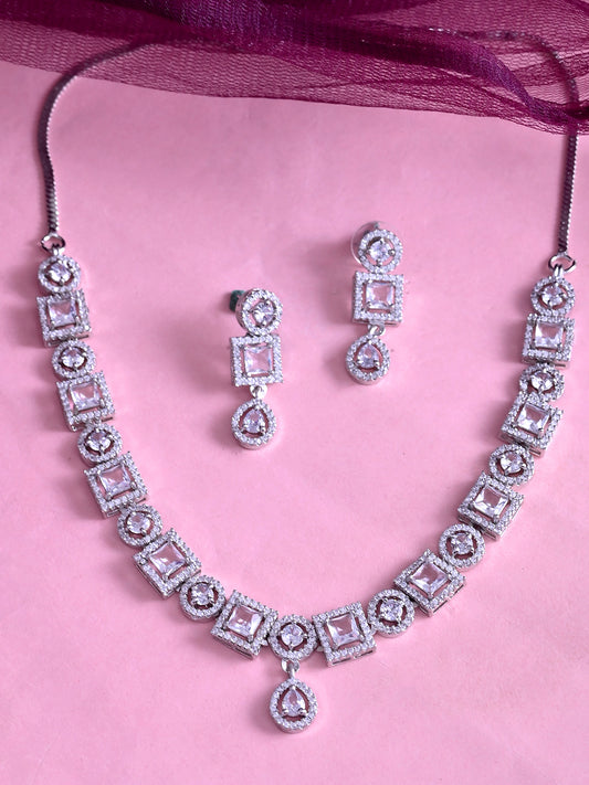 Classic Silver American Diamond Necklace Set | Wedding Jewellery For Women| Bridal CZ Necklace With Earrings