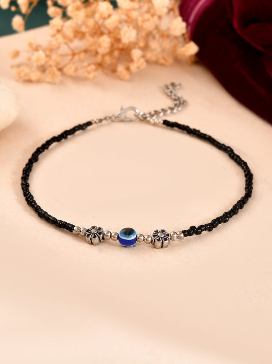 Black Beaded Evil Eye Silver-Plated Anklet For Women & Girls | Protection Nazar Anklet