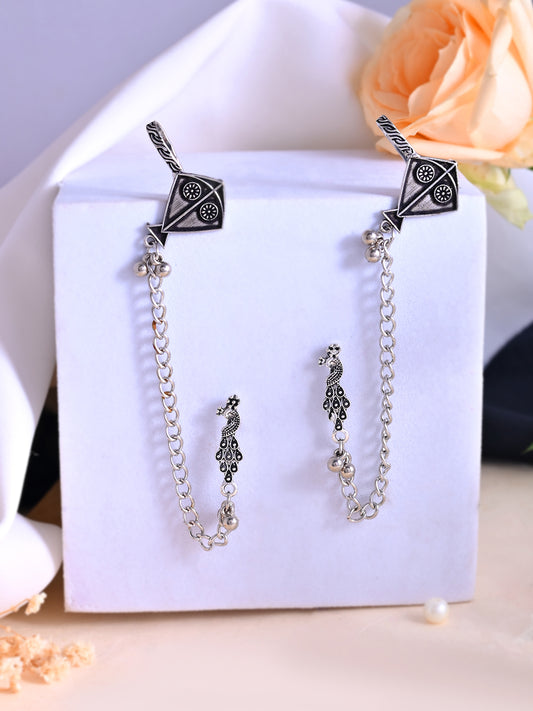 Oxidised Silver Chain Ear Cuff Earring For Women | Boho Ear Connector