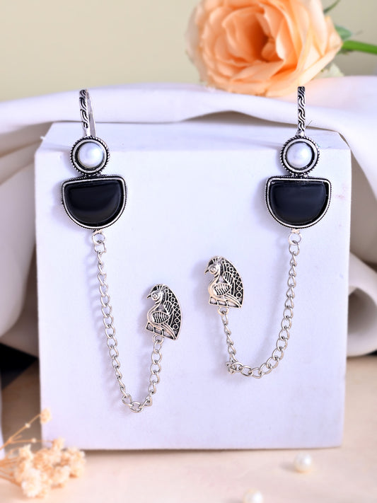 Black Oxidised Silver Chain Ear Cuff Earring For Women | Boho Ear Connector