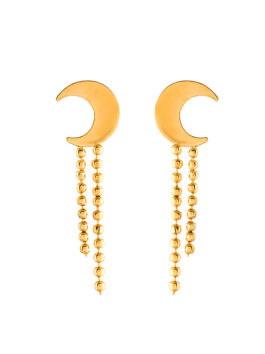 Gold Plated Moon Dangler Earrings For Women | Trendy Drop Earrings