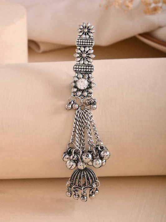 Oxidised Silver Saree Pin With Ghungroo For Women