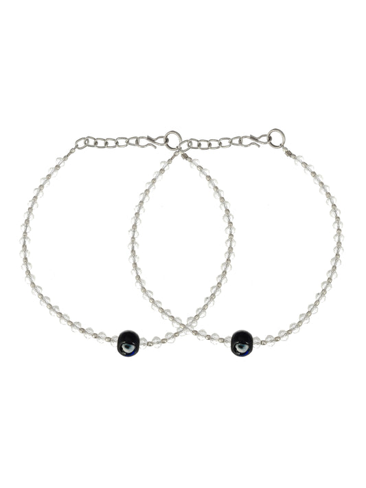 Silver Plated Black Beaded Evil Eye Anklet For Women